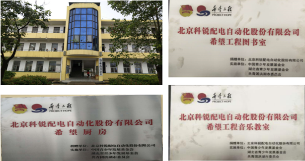 2019年11月,北京科銳配電工會向中國青少年發(fā)展基金會捐贈9.5萬元,該公益金主要用于湖北省洪湖市戴家場鎮(zhèn)盧墩小學(xué)文化教育建設(shè),在中國青少年發(fā)展基金會統(tǒng)籌下,以優(yōu)化教學(xué)環(huán)境、改良基礎(chǔ)設(shè)施為著力點,助力該校通過“希望工程圖書室”、“希望工程快樂體育園地”、“希望工程快樂音樂教室”與“希望廚房"等行動,為學(xué)生提供良好的學(xué)習(xí)環(huán)境。