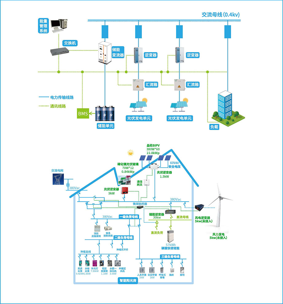 用戶側(cè)儲能/光儲充微網(wǎng)系統(tǒng),通過靈活接線,能夠?qū)δ?、充電樁、光伏、等單元與微電網(wǎng)內(nèi)各負荷類型進行有機組合,構(gòu)建各類綜合能源服務(wù)角色,模擬各種區(qū)域能源業(yè)務(wù)場景,實現(xiàn)終端用戶在能源業(yè)務(wù)場景中的緊密互動。通過智慧供能控制平臺,實現(xiàn)儲能削峰填谷功能與光伏發(fā)電結(jié)合,進行峰谷套利,提升可再生能源消納水平。通過電動汽車充電樁的應(yīng)用以及可控負荷的靈活調(diào)度,提升終端電氣化利用效率,提升用能水平,降低用能成本??尚纬捎刑厣摹⒂谢盍Φ?、大眾參與的綜合能源服務(wù)創(chuàng)新運營模式,催生具有盈利空間的新興能源消費生態(tài)體系,引領(lǐng)綜合能源服務(wù)發(fā)展方向。